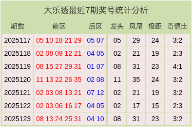 上期大乐透的开奖号码中,首尾组合为08+31,极距为23,奇偶比为3:2。