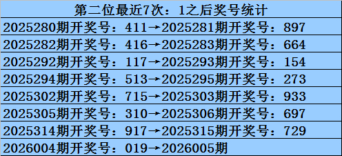第二位冷码判断:上期奖号为1,遗漏值为40期,现在该位最冷号码为6,遗漏值为25期,本期不看好解冻。